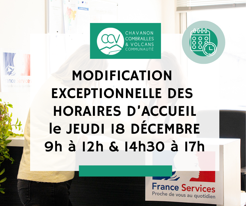 𝐉𝐞𝐮𝐝𝐢 𝟏𝟖 𝐝𝐞́𝐜𝐞𝐦𝐛𝐫𝐞, 𝐥𝐞𝐬 𝐡𝐨𝐫𝐚𝐢𝐫𝐞𝐬 𝐝’𝐚𝐜𝐜𝐮𝐞𝐢𝐥 𝐝𝐮 𝐩𝐮𝐛𝐥𝐢𝐜 𝐬𝐞𝐫𝐨𝐧𝐭 𝐞𝐱𝐜𝐞𝐩𝐭𝐢𝐨𝐧𝐧𝐞𝐥𝐥𝐞𝐦𝐞𝐧𝐭 𝐦𝐨𝐝𝐢𝐟𝐢𝐞́𝐬 :