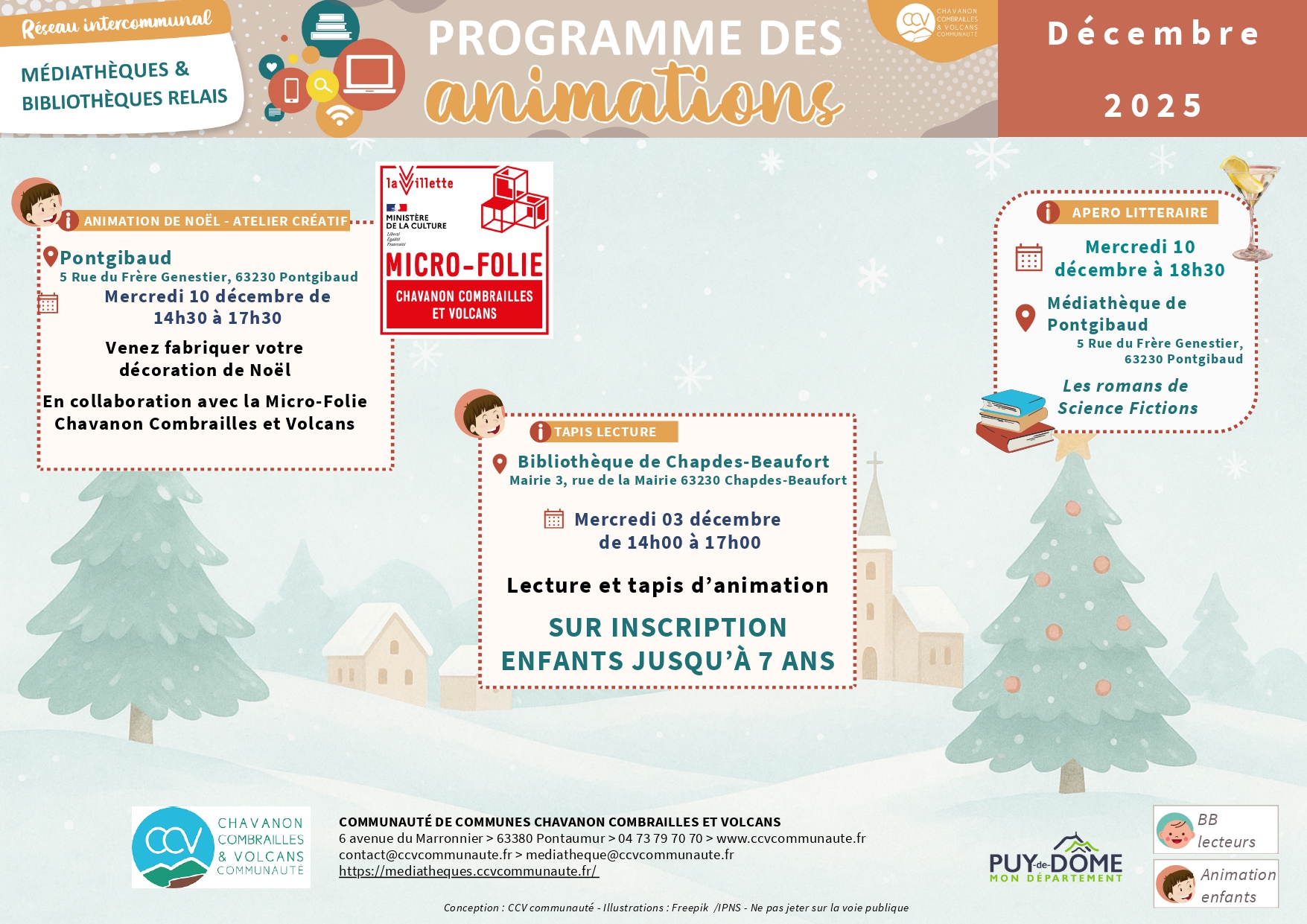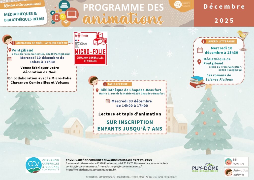Tandis que le mois de décembre amène les premières neiges, le Réseau de lecture apporte également son lot d’animations pour ce début d’hiver : apéro littéraire, lecture sur tapis et atelier créatif autour des décorations de Noël ! Venez préparer les fêtes de fin d’année en toute