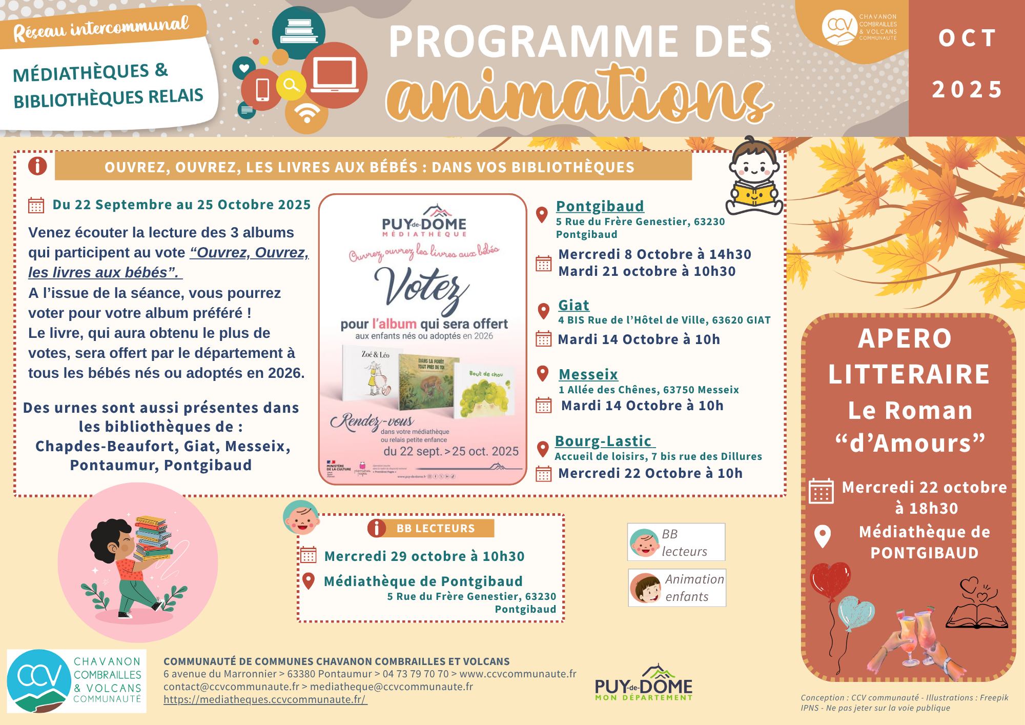 Planning_animations_octobre_2025 Full size 2000 × 1414 pixels « Ouvrez ouvrez les livres aux bébés » : à vos votes ! Tweet Share 0 Reddit +1 Pocket LinkedIn 0 Previous image