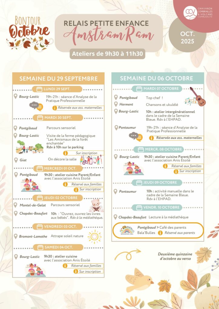 🫴 L’équipe du Relais Petite Enfance AmstramRam vous a concocté un programme aux couleurs de l’automne pour partager des moments chaleureux et créatifs : cuisine, visites, lecture douillettes et chansons à la faveur de l’Automne … De quoi célébrer cette belle période dans la convivialité et la bonne humeur !